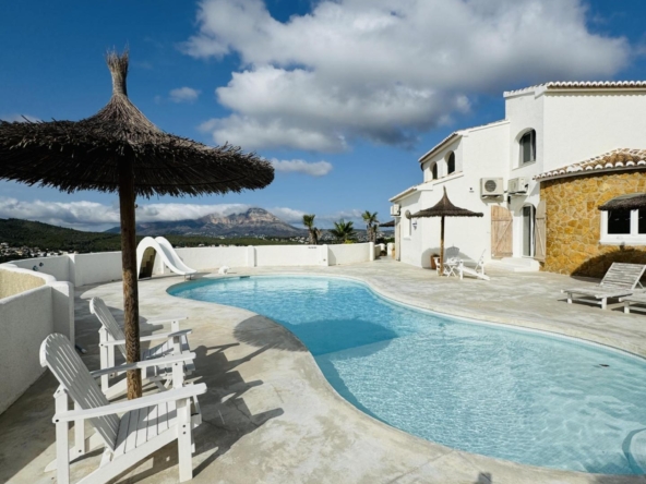 Esta moderna villa es una verdadera joya arquitectónica, que se extiende sobre una suntuosa parcela de 1.347 m², donde se despliega una construcción de 704 m², que ofrece una superficie habitable de 503 m². Diseñada con los materiales más refinados y tecnología domótica de vanguardia, encarna el lujo y el confort.~~La propiedad se articula en tres niveles, accesibles por elegantes escaleras interiores, y consta de 4 amplias habitaciones, cada una con acceso directo a terrazas soleadas, que ofrecen impresionantes vistas al mar y a la montaña. Los 4 baños, dos de ellos en suite, están cuidadosamente diseñados para garantizar la intimidad y la comodidad.~~En la planta baja, un sótano de 205 m² ofrece multitud de posibilidades de diseño, lo que permite al futuro propietario personalizar este espacio según sus necesidades. La villa cuenta con numerosas terrazas exteriores, ideales para disfrutar de los más de 320 días de sol de la Costa Blanca.~~Orientada al este, esta villa está bañada por abundante luz natural durante todo el año. Entre sus lujosas instalaciones se encuentran un sistema de calefacción por suelo radiante que utiliza aerotermia, aire acondicionado centralizado y una piscina infinita con impresionantes vistas de los alrededores.~~El jardín, cuidadosamente diseñado con plantas y árboles frutales, cuenta con riego automático, y el acceso a la propiedad está totalmente automatizado para una máxima seguridad y comodidad. Un amplio solárium también permite admirar las más bellas vistas al mar y al Peñón de Ifach.~~Por último, esta villa cuenta con una cocina de diseño excepcional, totalmente equipada con electrodomésticos de alta gama, un sistema de alarma inteligente y cristales de seguridad de doble acristalamiento, que garantizan tranquilidad y seguridad. La puerta blindada de entrada refuerza aún más la protección de este remanso de paz. Es un verdadero santuario donde la sofisticación se une a la modernidad, ofreciendo una calidad de vida inigualable.~