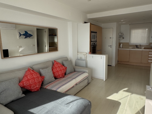 Accedemos a la propiedad a través del ascensor en una zona residencial privada y con plaza de aparcamiento. La vivienda tiene 68m2 distribuidos en dos habitaciones y un baño. La cocina integrada en el salón orientado al Sureste nos promete junto a su terraza, amaneceres espectaculares donde el sol nutre de luz todas las estancias de las casa.