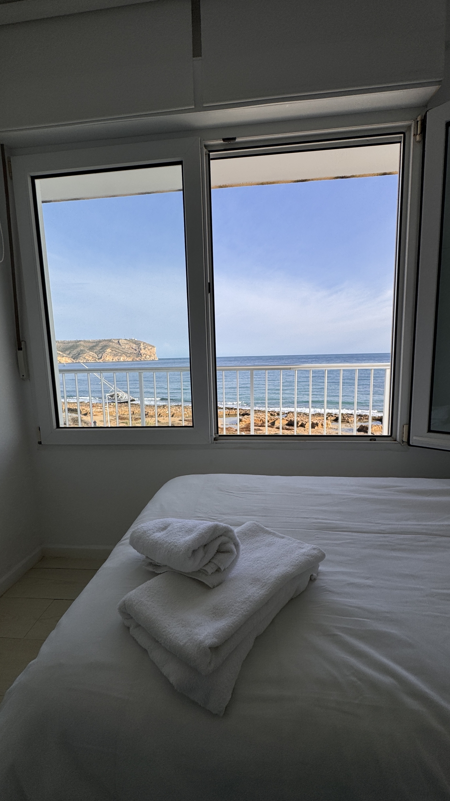 Mención especial merece una de las habitaciones orientada a la mitad Norte de la bahía con el cabo de San Antonio al fondo digno de la mejor postal de Jávea.