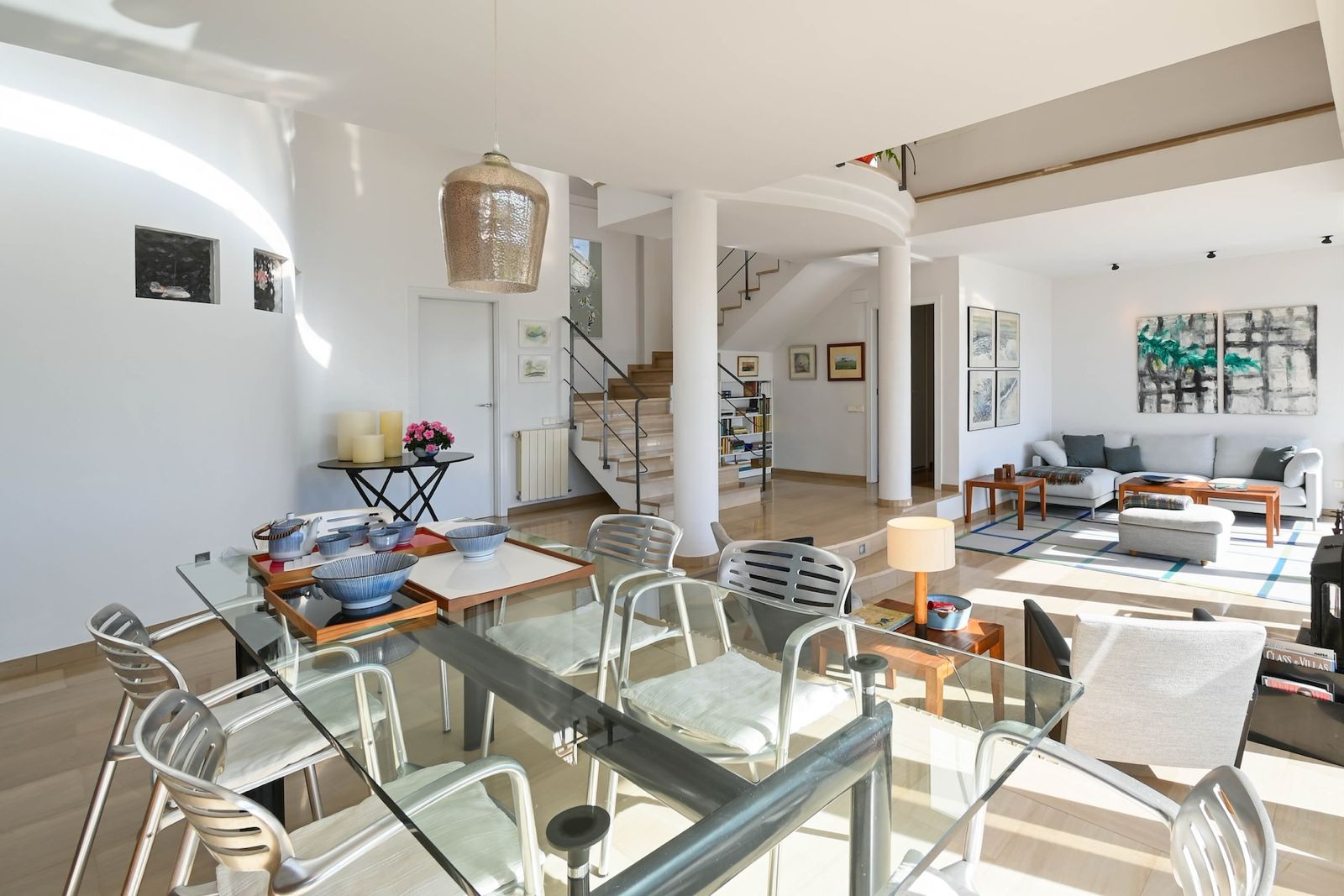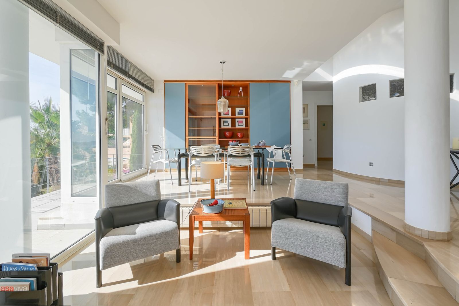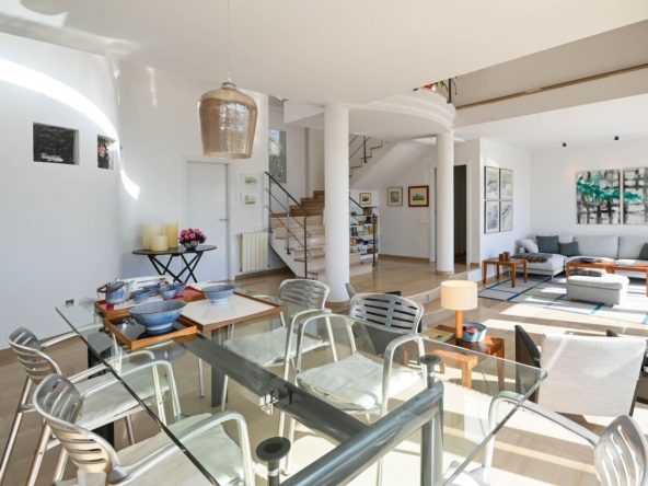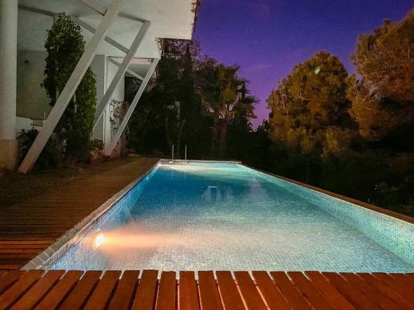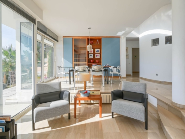 La planta principal la protagoniza un magnífico salón panorámico. La luz que entra al salón-comedor es sencillamente espectacular. Salimos a la terraza de 20m2 para contemplar la bahía de Jávea desde una ubicación privilegiada.