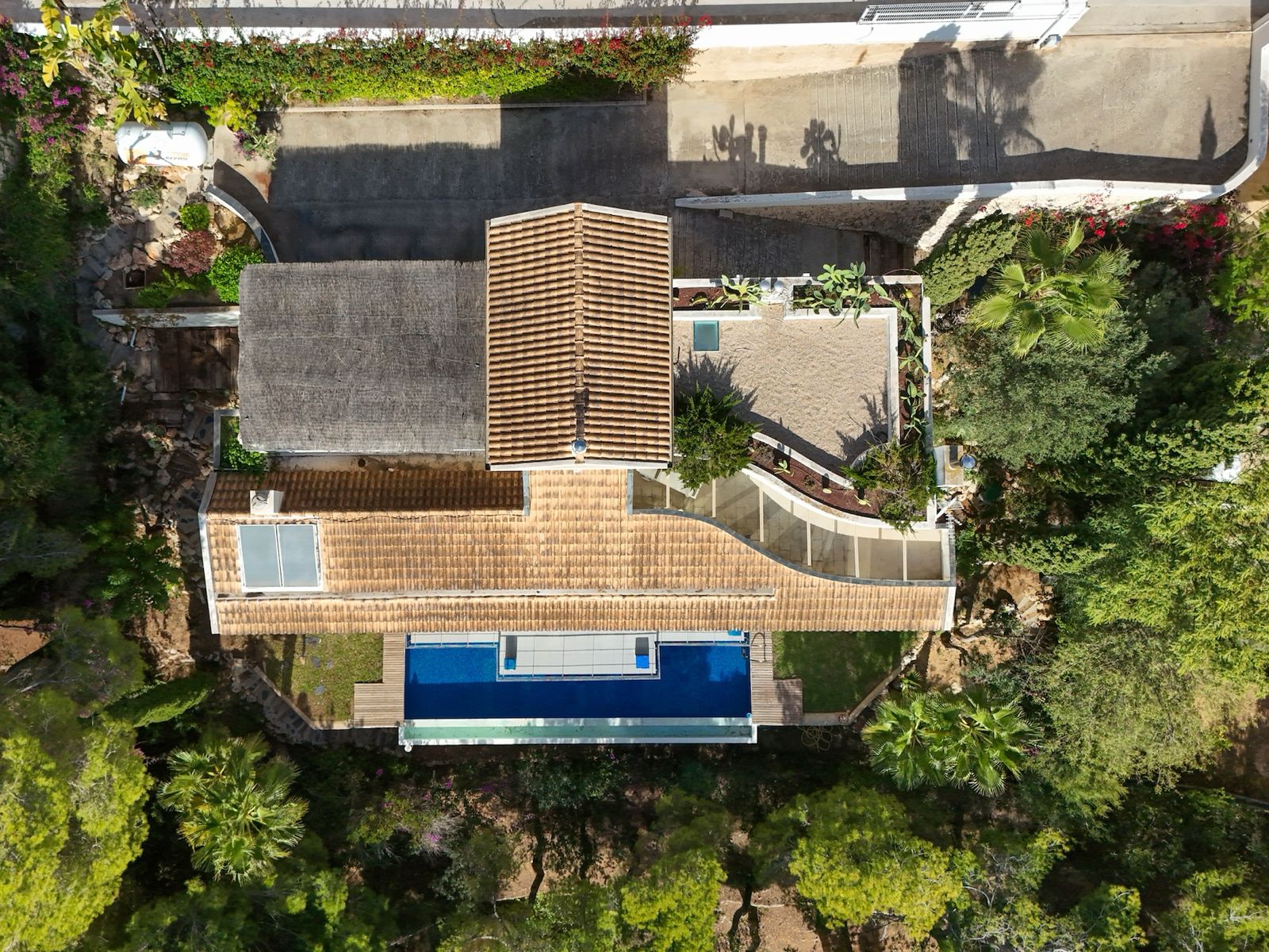 Es en este nivel donde encontramos una piscina estilizada y una zona chill out que nos regala, gracias a su orientación Sur, una desahogada sombra en verano y un agradecido sol en invierno. Es una zona de ocio con un grandísimo potencial de desarrollo.